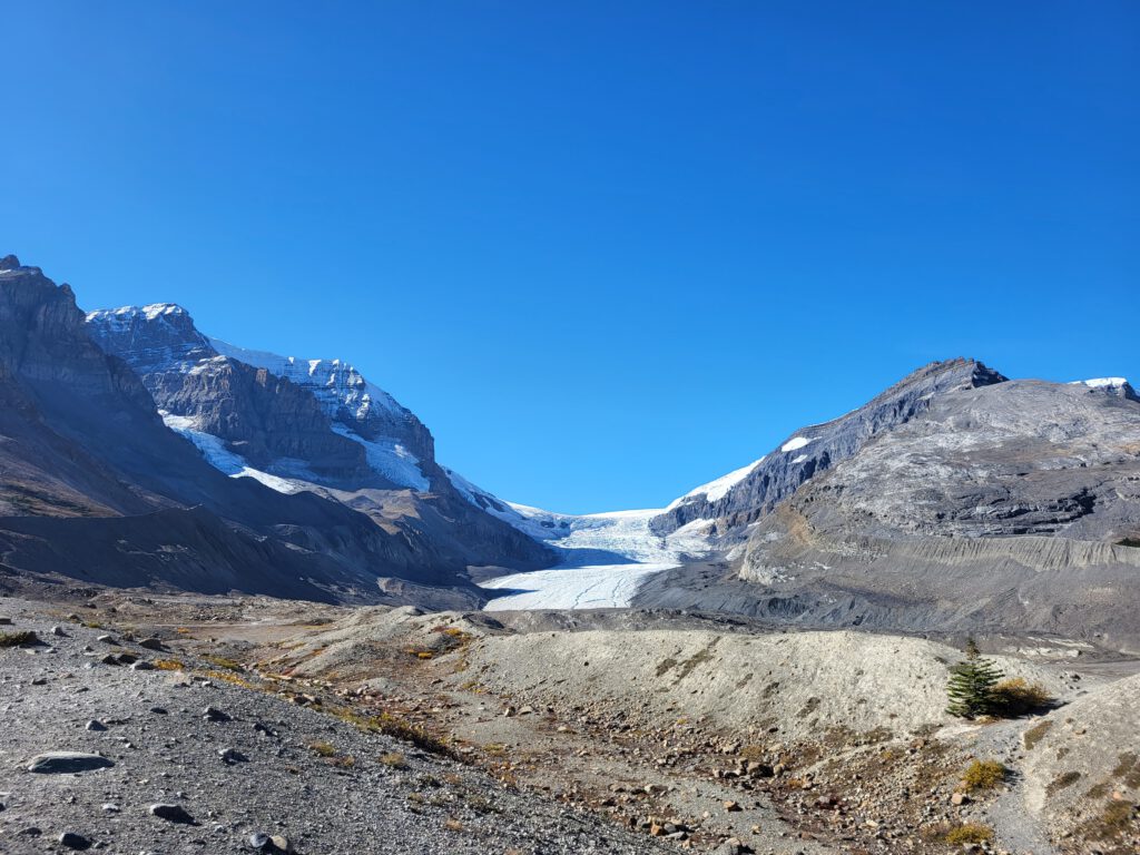 Vanmorgen na een bijzonder ontbijt vertrekken we rond 8:30 uur. Het is 15 graden. We rijden weer in hetzelfde landschap als gisteren. Tegen de tijd dat we bij de eerste bezienswaardigheid komen is het 9:30 uur en 24 graden. Het is de Head-Smashed-in-Buffalo Jump. Dit is een ravijn waar indianen rond 6 tot 7000 jaar geleden bizons dreven. Bizons hebben een erg slecht zicht. Ze werden in kuddes gedreven en vielen zo de ravijn in. De bizons dienden onder meer als voedsel voor de indianen.