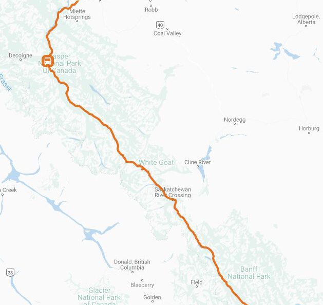 Vandaag gaan we de Icefields Parkway rijden. Prachtig in de bergen en landgs de meren. Ook zijn veel rivieren en meren droog.