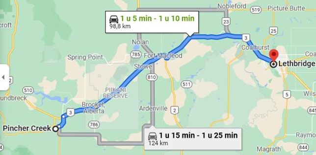 Pincher Creek – Lethbridge (172 km)
