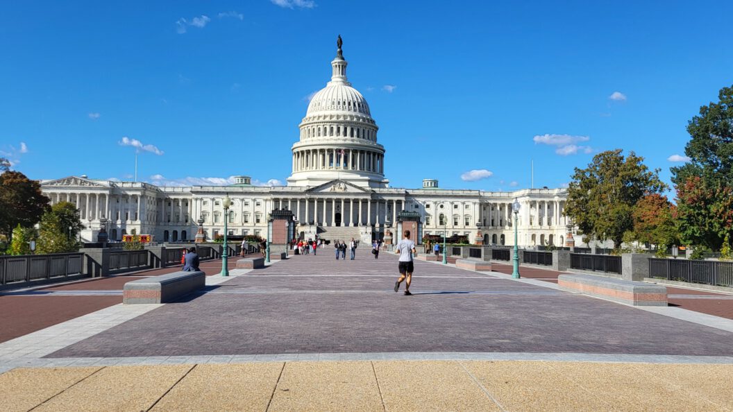Aan de overkant zien we het indrukwekkende Capitol Hill. Wat een prachtig gebouw! Het is moeilijk voor te stellen wat zich hier heeft afgespeeld op 6 januari. Eveneens gesloten voor het publiek.