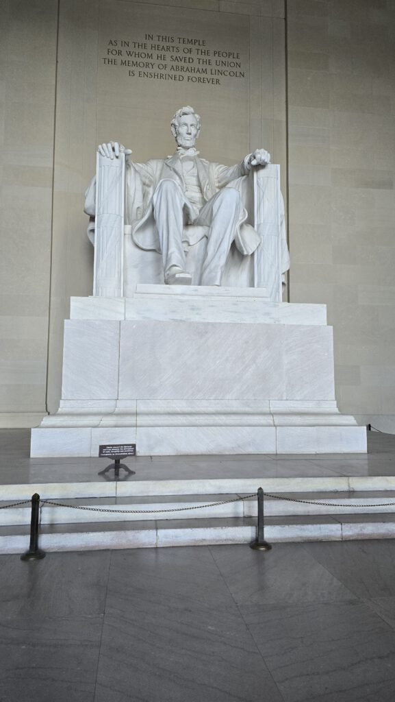 Bij het Lincoln Memorial is het iets drukker, maar de plek is enorm bijzonder. A wilde dit graag zien. Het monument is een marmeren tempel met het grote beeld van Abraham Lincoln, de 16de president van de VS. Hier hield Martin Luther King Jr. in 1963 zijn beroemde “I Have a Dream”-speech. We blijven er nog even zitten en genieten van het moment.